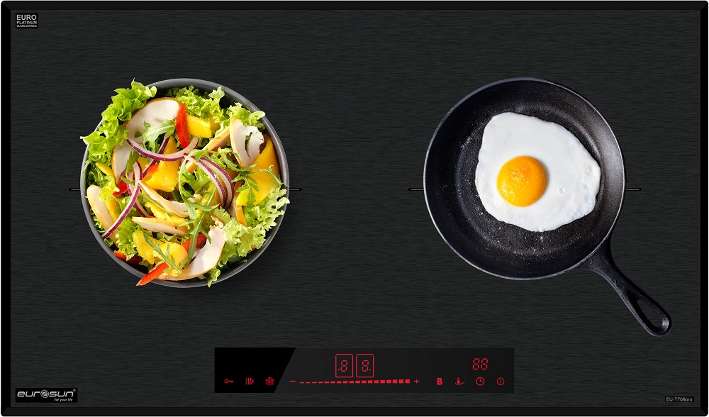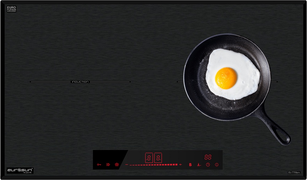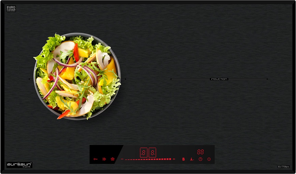 Bếp từ Eurosun EU-T709Pro trang bị mặt kính Euro Platinum (màu kim loại xước) độc quyền duy nhất tại thị trường Việt Nam