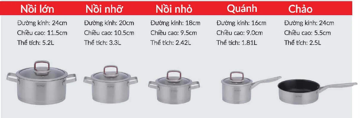 Bộ nồi chảo cấu trúc 3 lớp đáy giúp truyền và giữ nhiệt tối ưu, tiết kiệm năng lượng