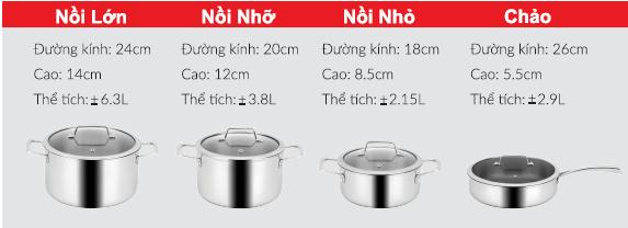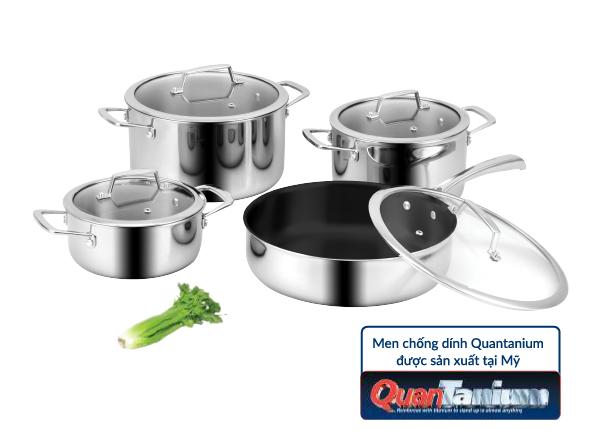 Bộ nồi - Chảo cấu trúc 3 đáy giúp truyền và giữ nhiệt tối ưu, tiết kiệm năng lượng