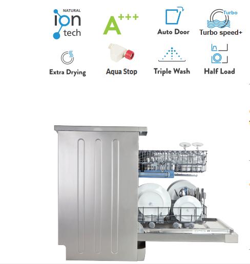 Đặc tính sản phẩm: Máy rửa bát lắp độc lập thế hệ mới,3 khay chứa cơ động + 1 giỏ để đũa, ly cốc, Ray nâng hạ Vario space thông minh thay đổi chiều cao giữa các khay,Công nghệ Sấy Drying Turbo sấy khô triệt để, diệt vi khuẩn và nấm mốc lên tới 99,99%, Công nghệ Eco Silence động cơ BLDC ngoài giúp máy hoạt động mạnh mẽ hơn, tiết kiệm đến gần 50% năng lượng và thời gian, ngoài ra còn giúp máy chống rung hoạt động yên tĩnh với độ ồn thấp nhất., Công nghệ Triple & Direct Wash là công nghệ rửa trực tiếp 3 chiều từ dưới lên tăng cường áp lực và rửa sạch đến từng góc nhỏ., Chương trình Auto Door - Cửa mở tự động cung cấp thêm quá trình sấy hiệu quả bởi mở cửa trong giai đoạn sấy cho phép không khí nóng và hơi nước thoát ra khỏi máy để làm khô vật dụng và không bị đọng hơi nước, Công nghệ Save Water Box giúp mỗi lần rửa tiêu thụ tối đa 5.4 lít nước, Công nghệ rửa thân thiện Ecowash - Half load với rửa 1/2 tải, Chức năng Turbidity sensor "Smart Wash" chức năng thông minh cảm biến độ đục phát hiện số lượng các chất bẩn trong nước để điều chỉnh các thông số trong chu kỳ rửa cho phù hợp với nguồn nước.