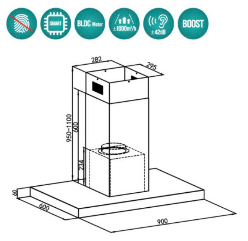 Kích thước sản phẩm: 900R x 600S x 950-1100C mm