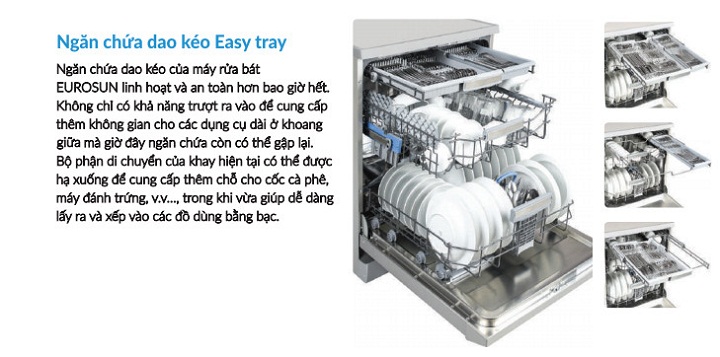 Sau đây là một số các tính năng thông minh của máy rửa chén Eurosun như :