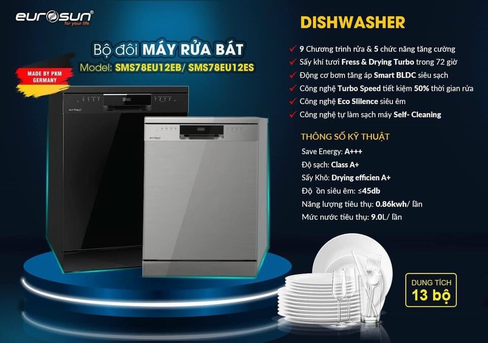 Máy Rửa Chén Eurosun SMS78EU12ES là sản phẩm chính hãng của Eurosun nhập khẩu nguyên chiếc . Được ra mắt vào cuối năm 2020, là dòng máy rửa bát thu hút được đông đảo gia đình Việt tin tưởng và lựa chọn bởi các tính năng hiện đại, thiết kế đẹp mắt và dễ dàng sử dụng