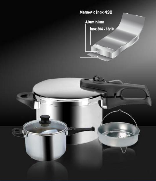 Đáy nồi sử dụng nhiều lớp và lớp nhôm dày 7mm, được chế tạo bằng máy tạo áp lực ma sát, khiến nồi có thể truyền nhiệt đồng đều hơn